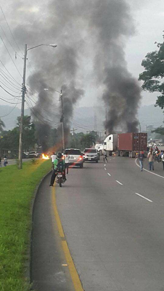 Los ciudadanos que apoyan a la Alianza de la Oposición incendiaron varias llantas en el puente ubicado sobre el río Choloma, más precisamente en frente de la colonia 19 de septiembre. Una buena cantidad de llantas y piedras de gran tamaño bloquean el trayecto, el cual es bastante transitado por personas que viajan entre las ciudades para laborar.