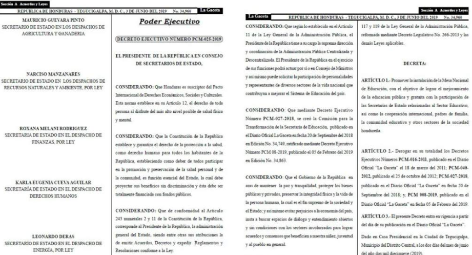 TEGUCIGALPA.- En cuestión de horas de haber sido anunciada la supuesta derogación de los decretos ejecutivos PCM 026 y 027 por parte del presidente Juan Orlando Hernández, ya fue publicado los dos nuevos decretos ejecutivos con los cuales los sustiyó.