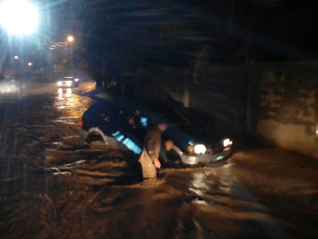También varios carros quedaron varados en las inundaciones.