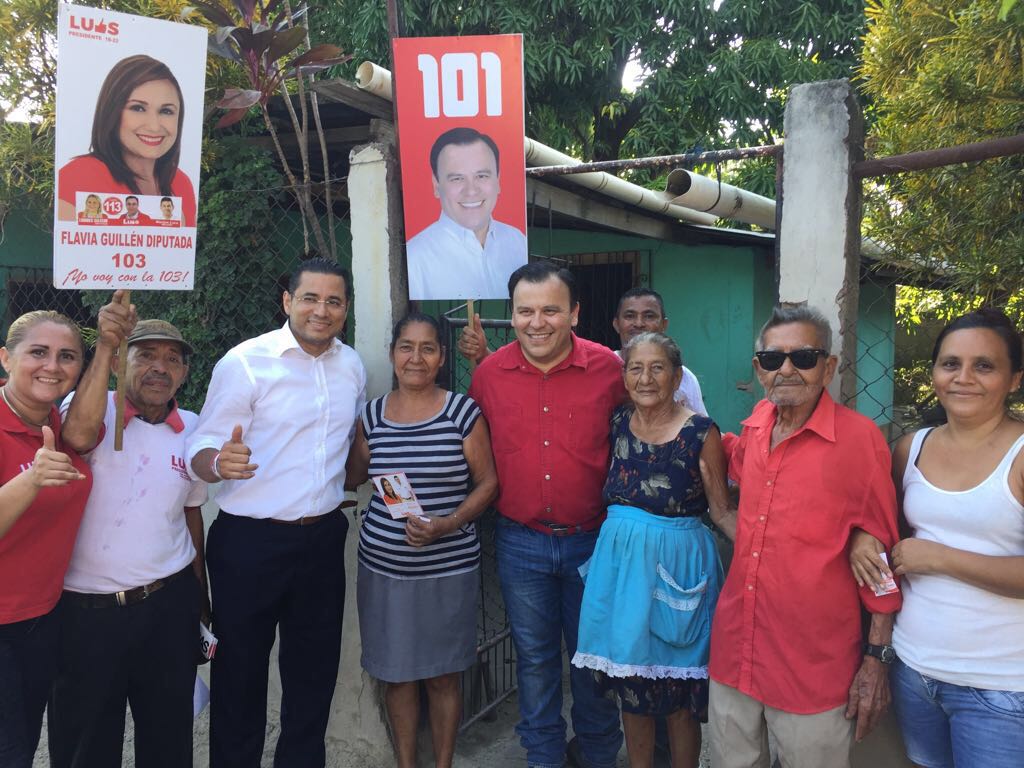 Darió Banegas estuvo acompañado también del candidato a alcalde de San Pedro Sula, Marlon Lara. Así como de Flavia Guillén, candidata a diputada.