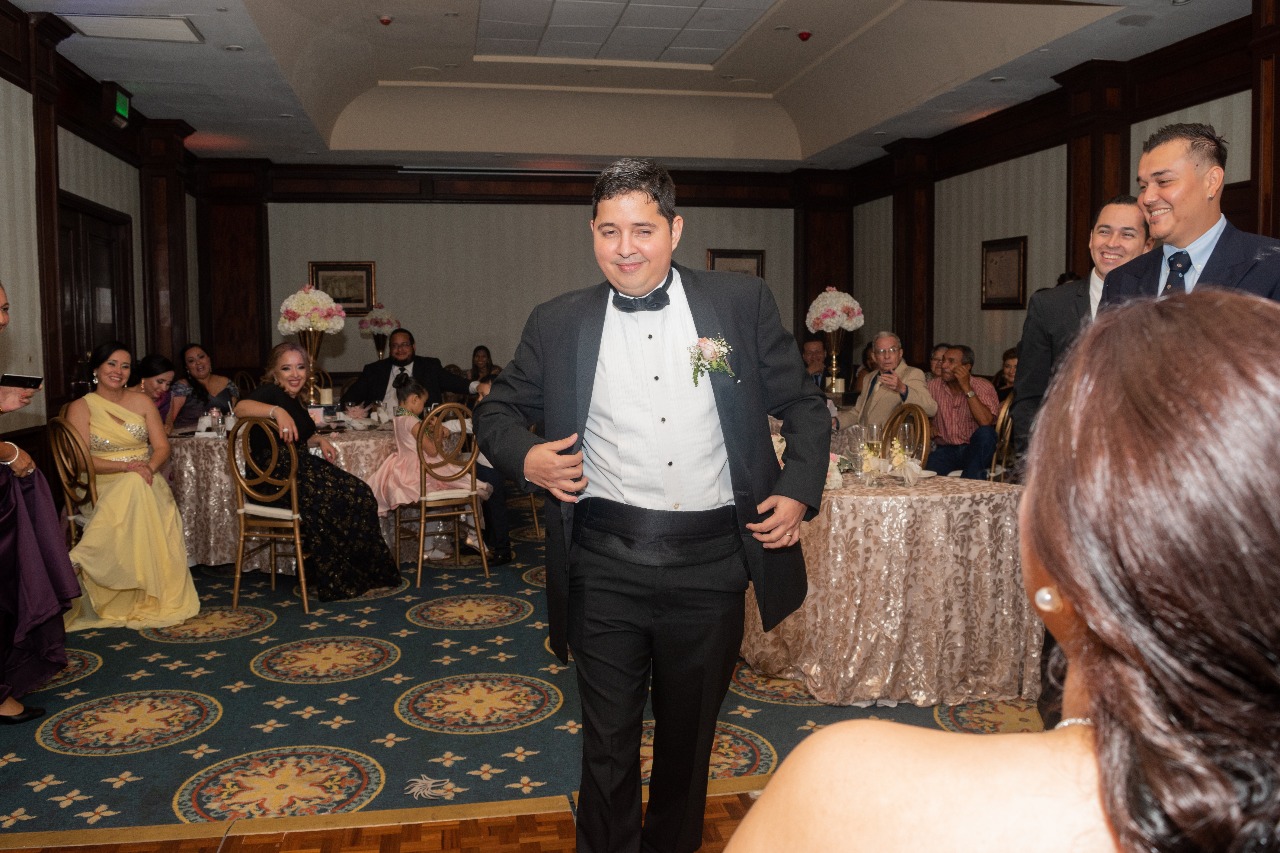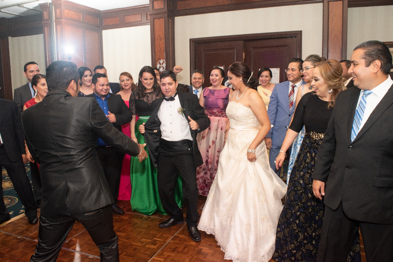Los recién casados hicieron su gran entrada al salón del Hotel Princess tomados de la mano hasta el centro de la pista para hacer su primer baile como esposos. Los padres de la pareja estuvieron en primera fila como testigos de ese acto tan significativo.