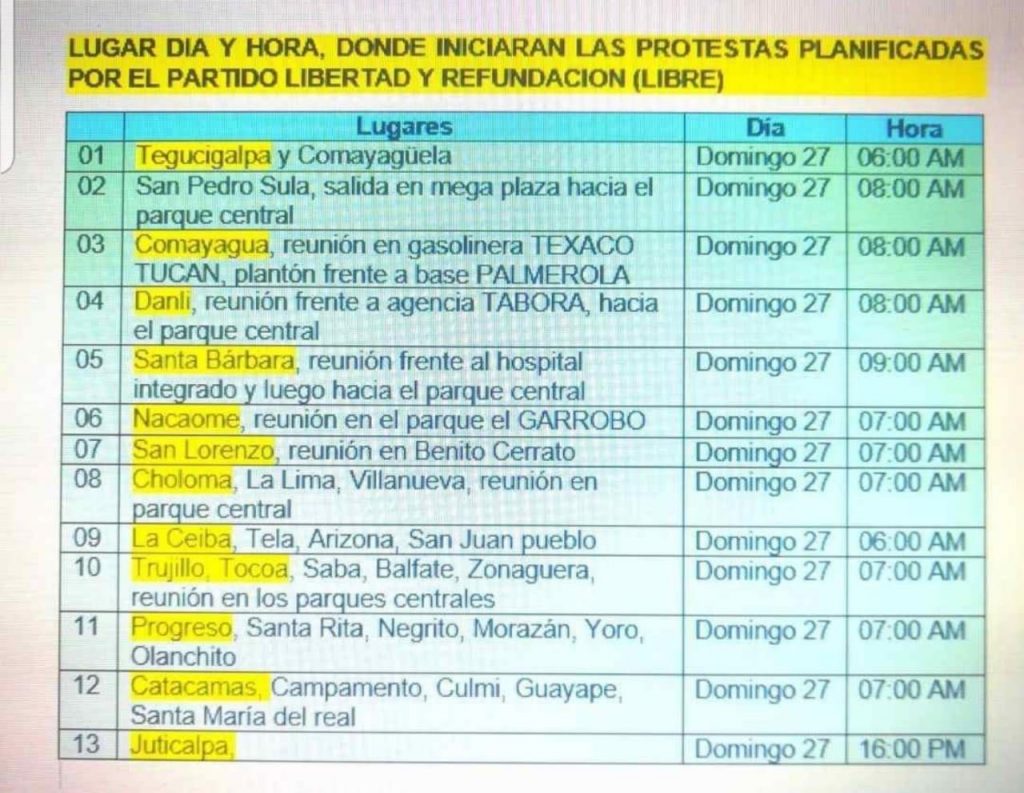 La convocatoria que circula en redes sociales señala que la protesta se extenderá hasta el 27 de enero, para cuando el partido Libertad y Refundación (Libre), que lidera el depuesto expresidente hondureño Manuel Zelaya (2006-2009), también ha convocado a sus bases a un “paro” por el presunto fraude.