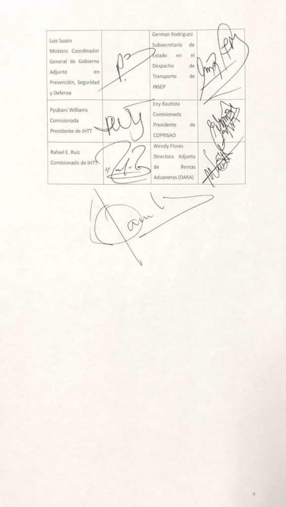 Además, el IHTT se compromete a garantizar que todos los transportistas de carga se les paguen sus tarifas mínimas establecidas en ley. En ese sentido, se hará un llamado público a toda la empresa privada sobre el cumplimiento del pago del $ 1.24 por kilómetro recorrido ida y vuelta, más el 20 por ciento sobre el remolque ya establecido en el reglamento especial aprobado mediante acuerdo ejecutivo IHTT-002-2019.