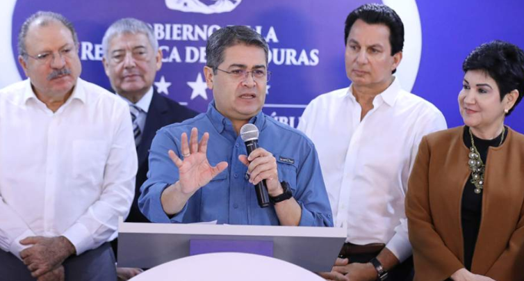 Hernández hizo el anuncio oficial acompañado de Mario Canahuati,, titular de la Asociación Hondureña de Maquiladores y varios ministros de su gabinete.