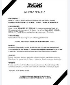 Se trata del Profesor Berardo Noé Menocal, Hilda Norey Vargas y Mirian Suyapa Meyer y una cuarta persona que les acompañaba Mario Danilo Ferrera que logró sobrevivir a esta tragedia.