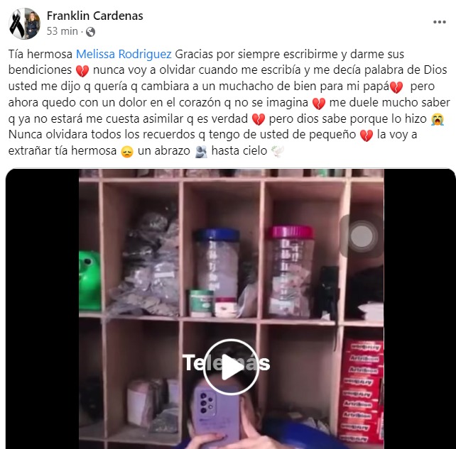 En otra publicación el joven escribió: «Quedo con un dolor en el corazón que no se imagina, me duele saber que ya no estará».