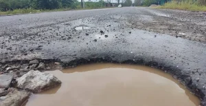 La carretera internacional CA-13, que se encuentra en un estado de deterioro crítico.